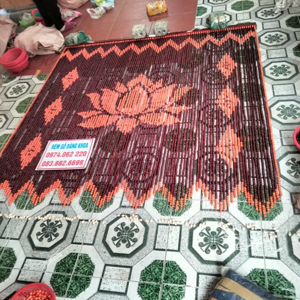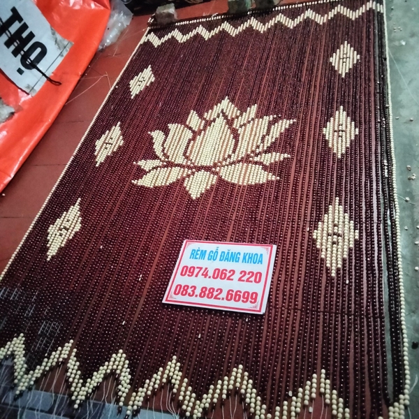 Mẫu rèm hạt gỗ họa tiết hoa sen
