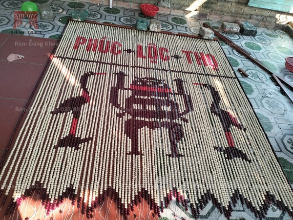 Mẫu rèm hạt gỗ họa tiết Phúc Lộc Thọ