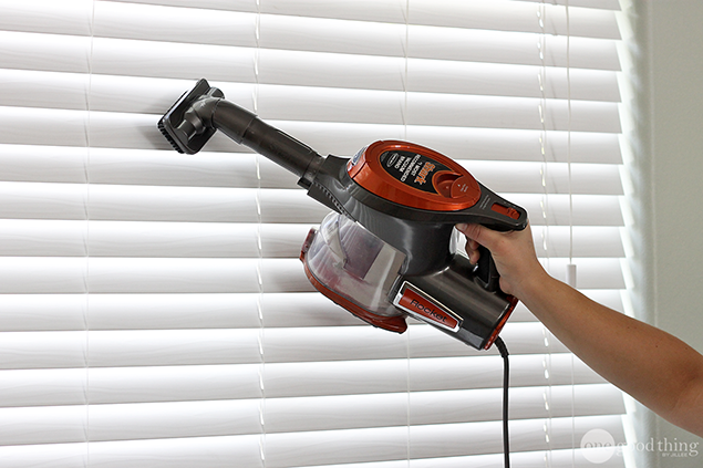 Làm sạch rèm gỗ bằng máy hút bụi nhỏ